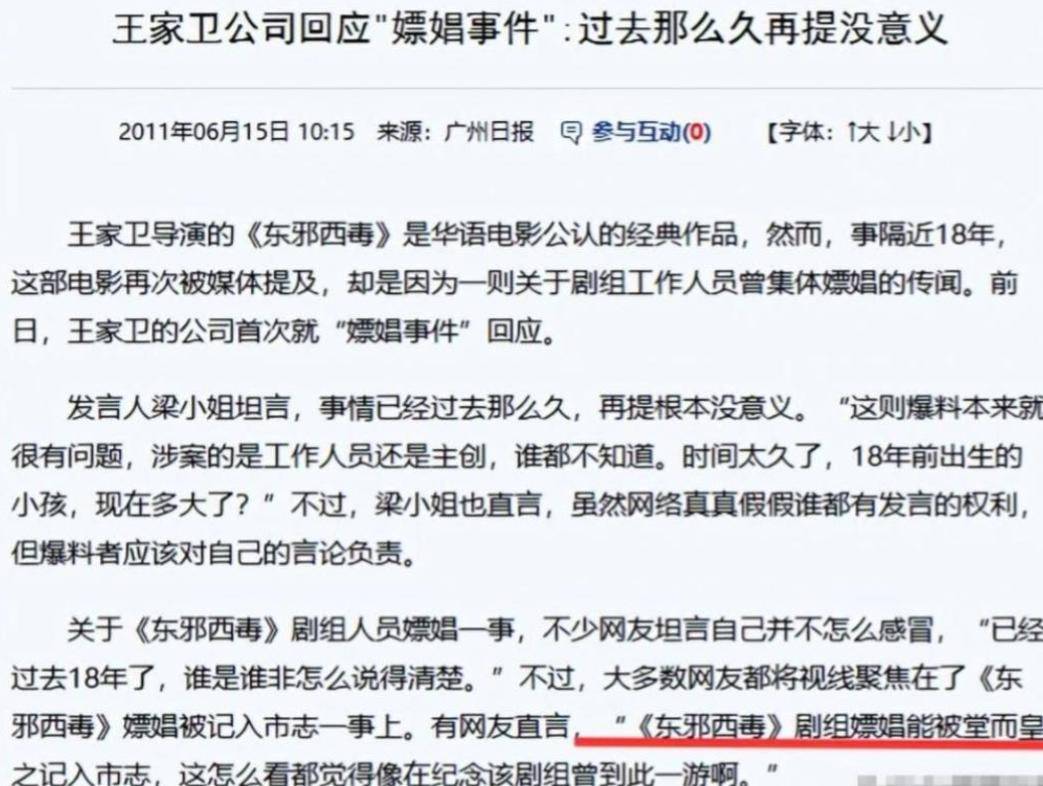 如果不是古二挑起了这场风波,王家卫的丑事可能永远都不会被曝光,毕竟互联网的初期并不发达,但今天,这些信息却依旧能够被挖掘出来。
