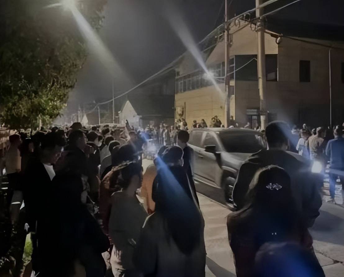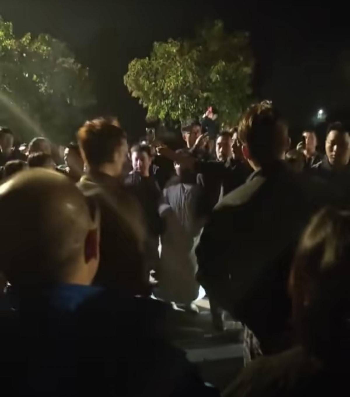 女方家门前日夜喧嚣,挤满了前来看热闹的人群,还有人手里举着“佳峰快跑”的牌子。即便夜深了,依然有大批吃瓜群众执着守候,久久不愿散去。