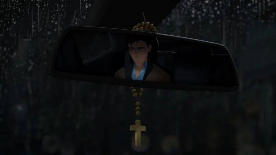 而从动画本身来说,在做到拥有流畅的打斗和海量细节的同时,《超英派遣中心》的镜头语言,还具备着叙事的功能。比如在许多情节中,都能注意到导演刻意设计的构图,通过玻璃的倒影或者视觉的错位,表达主角此时的落寞或纠结。