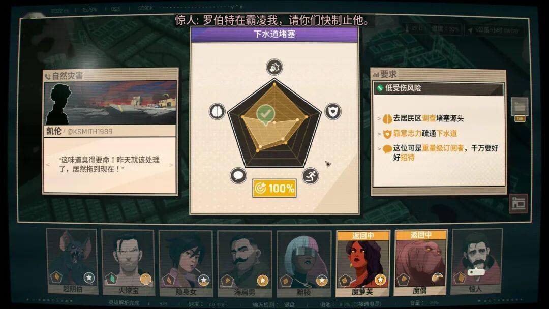 《超英派遣中心》放弃了在剧情播片上的探索互动,而是与剧情紧密结合,真实模拟了主角上班的情景。在大多数时刻,我都十分享受这一部分的游戏玩法,融入游戏的设定里,作为调度员与队员们合作,完成一次又一次的任务,并在这个过程中成长。